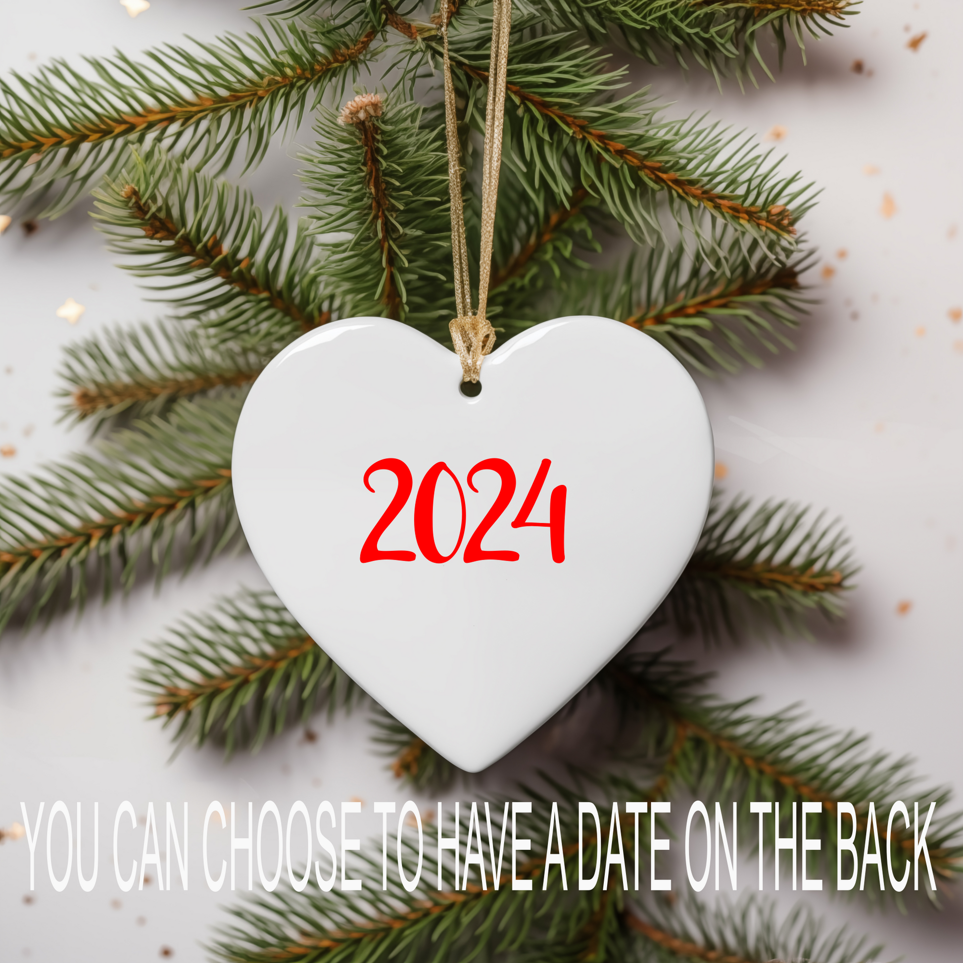 Ceramic 3" heart shaped ornament with hanger.