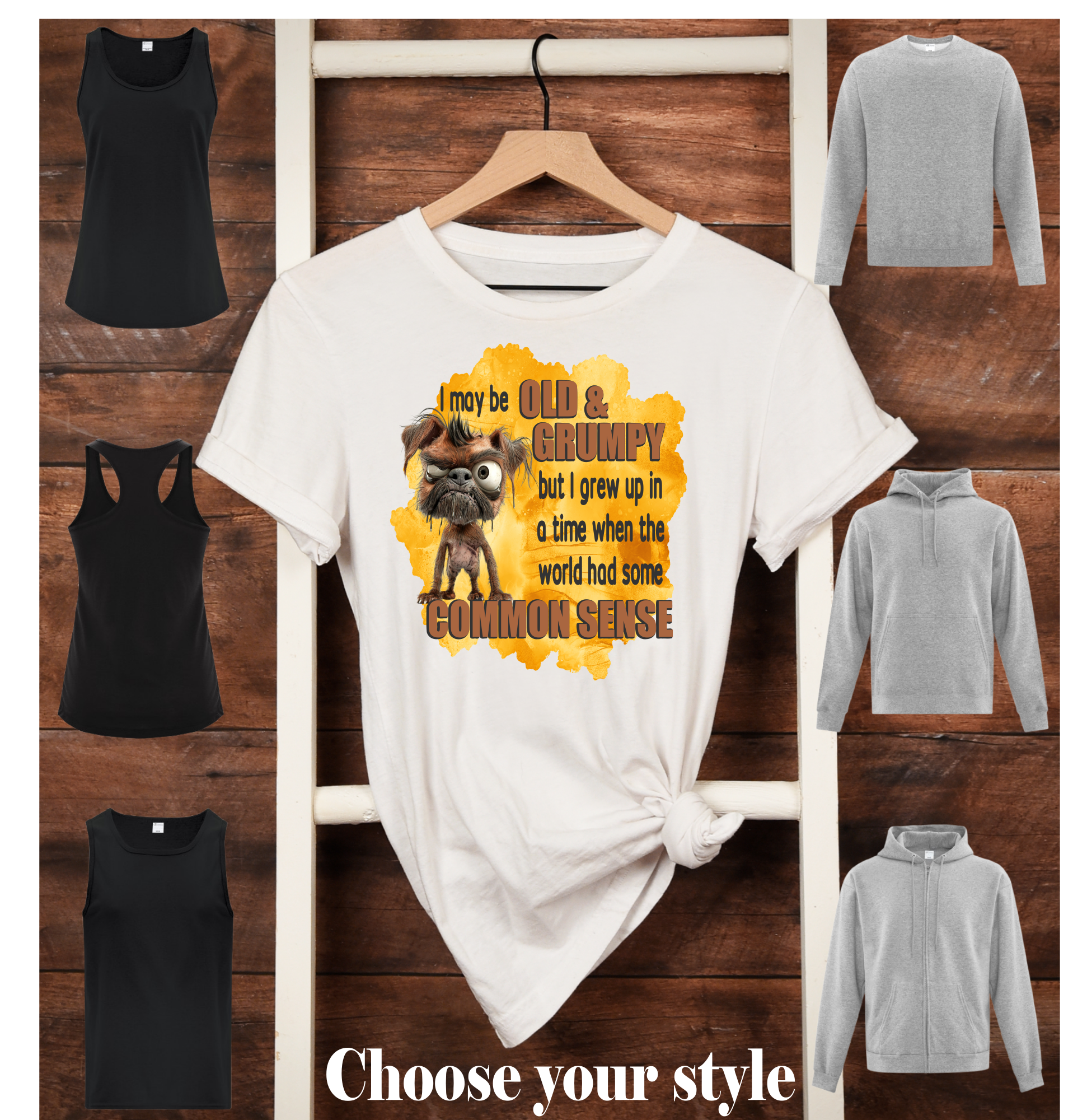 I May Be Old & Grumpy But I Grew Up In A time When The World Had Some Common Sense, Dog - Adult T-Shirts, Tank Tops, Sweatshirts & Hoodies